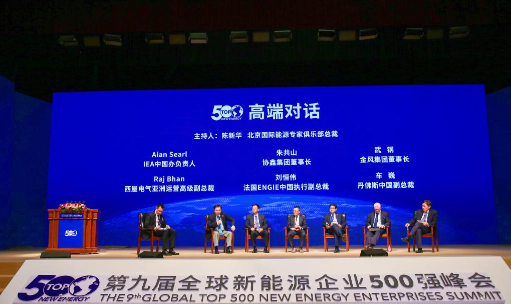 对话环节中,朱共山与国家电力投资集团党组副书记时家林、天津中环半导体有限公司董事长沈浩平、法国ENGIE中国执行副总裁刘恒伟等就"能源转型、清洁发展路径"的话题展开高端对话。